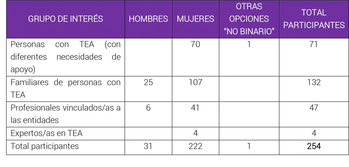 Respecto a las entidades no confederadas que han participado, han sido estas: APACAT, Asperga, Asperger TEA Salamanca, Carrillet Centro Educativo y Terapéutico, Cedin, Fundació Friends, Hospital Mutua Terrassa y Sintonía Social.