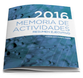 Este año hemos apostado por editar en papel un Resumen Ejecutivo de la Memoria de Actividades 2016. Este formato breve nos permite disponer de un material más sugestivo y sencillo para dar a conocer nuestra actividad, al mismo tiempo que ahorramos costes.